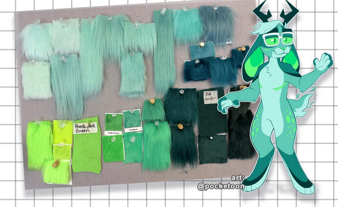 Take advantage of our 2500-swatch fur and fabric library from around the globe to find the right colors for your fursuit!You can commission us for colormatching here: